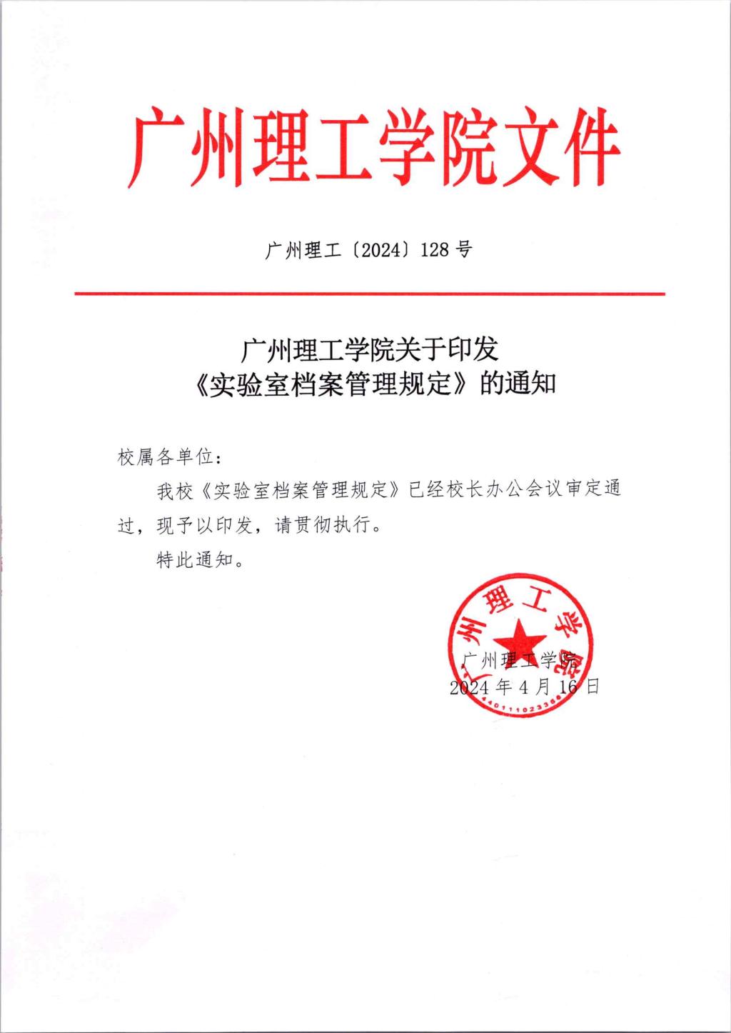 关于印发《实验室档案管理规定》的通知(广州理工〔2024〕128号).pdf