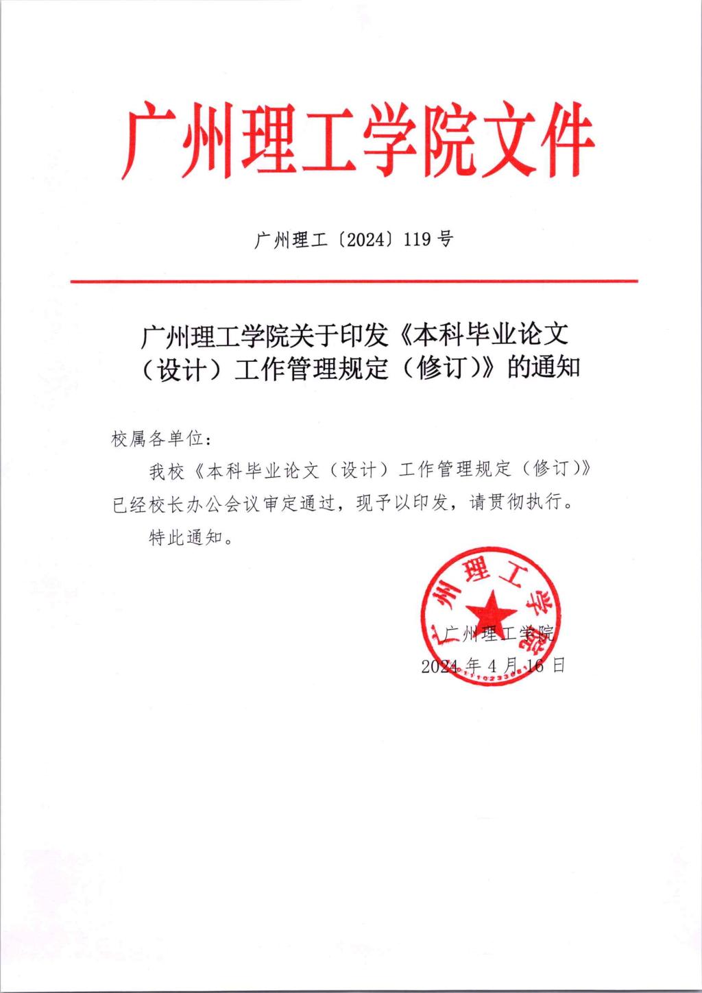 关于《本科毕业论文(设计)工作管理规定(修订)》的通知(广州理工〔2024〕119号).pdf