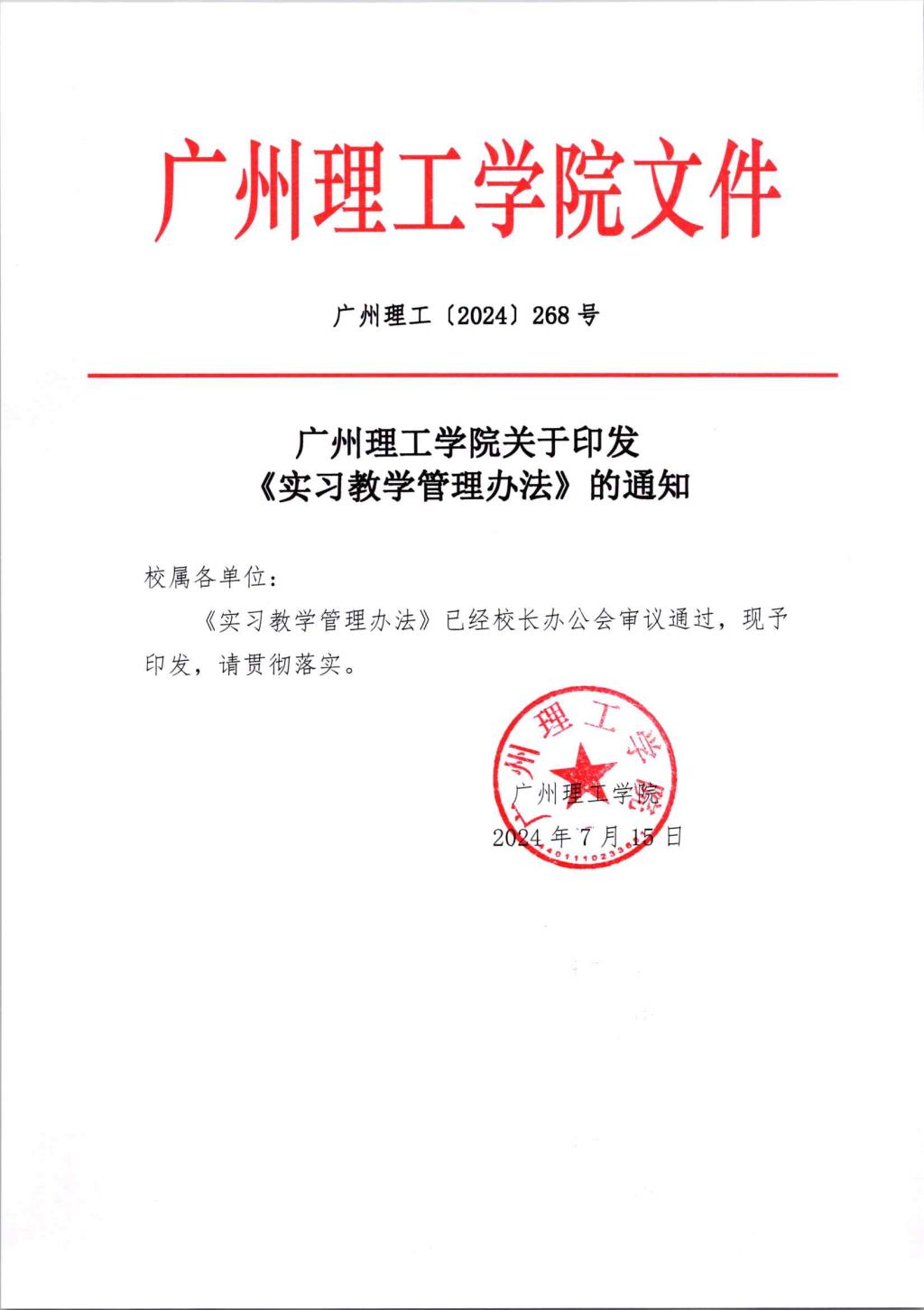 关于印发《实习教学管理办法》的通知(广州理工〔2024〕268号)以此为准.pdf