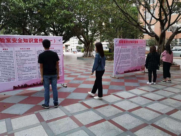 11月13日,为宣传普及实验室安全知识、加强实验室安全意识,提高防范自救能力,实验室与设备管理办公室在综合楼前举办实验室安全知识宣传活动。