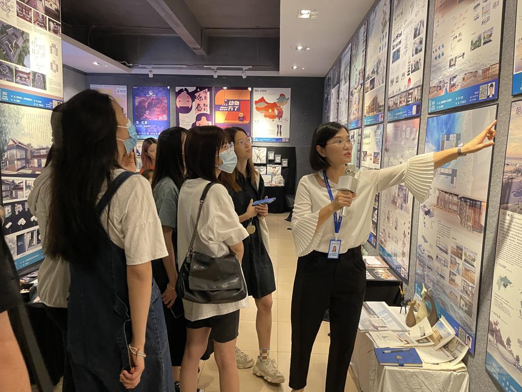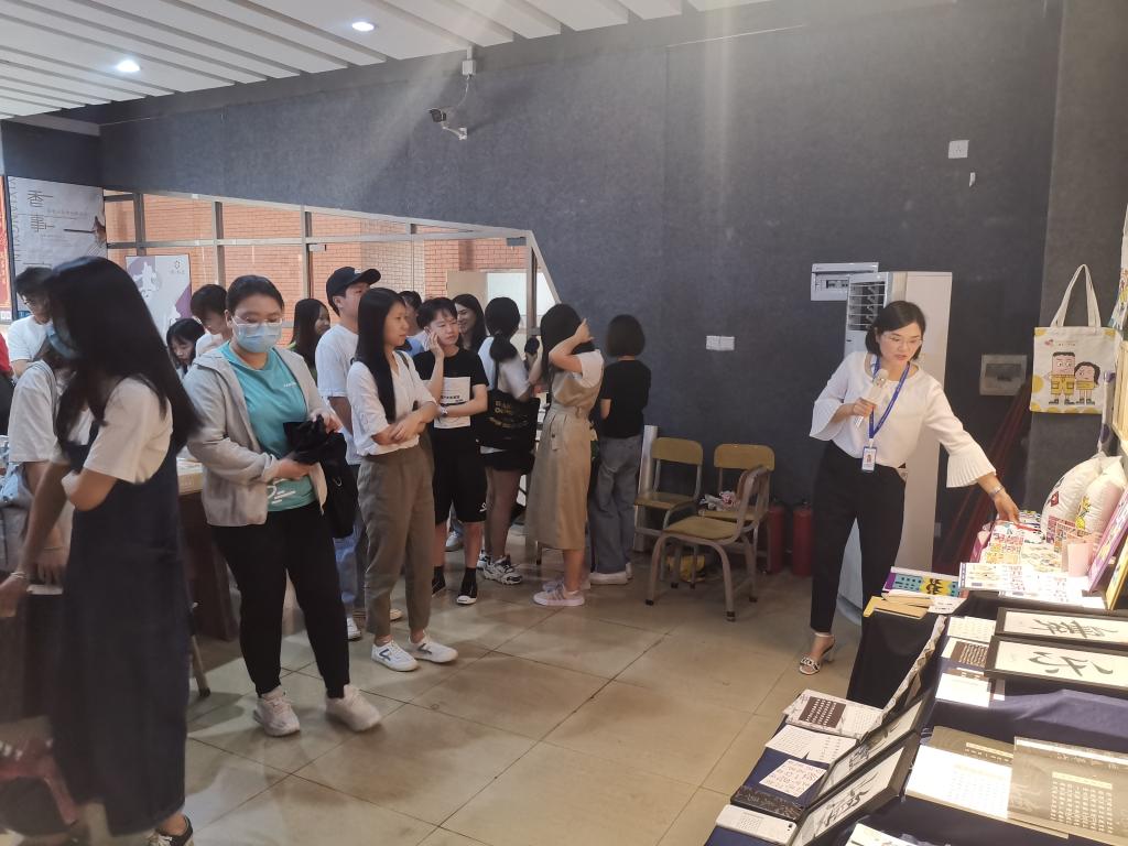 为促进成果转化,工商管理学院、机电工程学院组织市场营销、电子商务、工业设计专业19个班共1000余名学生分批参观了设计展览。艺术学院副院长李丽丹、办公室主任颜冬果、艺术系主任欧阳丽萍以及作品的设计者为观展的学生详细讲解了展品的性质与特点。