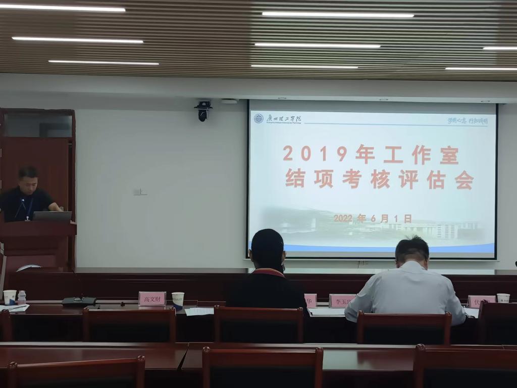 (李晓仪)6月1日,我校在行政楼815会议室举行2019年工作室结项考核评估会,发展规划与科研处处长陈天勇,实验管理中心副主任高文财,评审专家李玉忠、李培祥、田祥斌、尚华,2019年社会服务、博士、名师、双师四类工作室负责人及部分成员参加了会议。