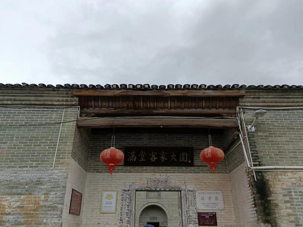 紧接着,张聪带领我校师生前往隘子满堂客家大围。满堂客家大围是方形大围,属清代砖石结构的四合院式围楼,也是中国民居建筑中“方围”的杰出代表,并具有“岭南第一围”的美誉。讲解员介绍了满堂客家大围的过往历史,在抗日战争时期,这里曾作为广东省委、粤北省委机关办公旧址,为广东抗日战争贡献出始兴人民的力量。