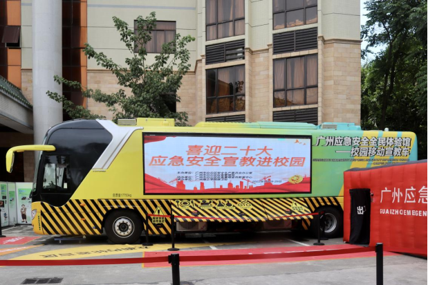 9月28日, 为进一步增强师生安全应急防范意识,树立安全发展理念,掌握安全急救知识和技能,提高防灾、避灾和自救互救能力,学校联合广州市应急管理局举办了“移动宣教车进校园—安全应急公益宣教体验活动”,200余名师生员工参加了本次活动。
