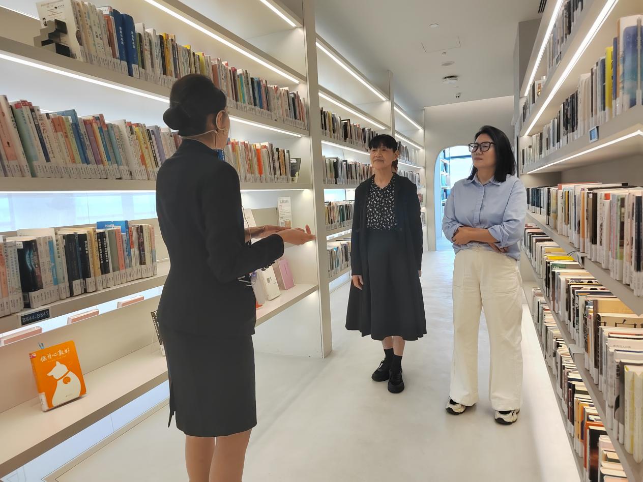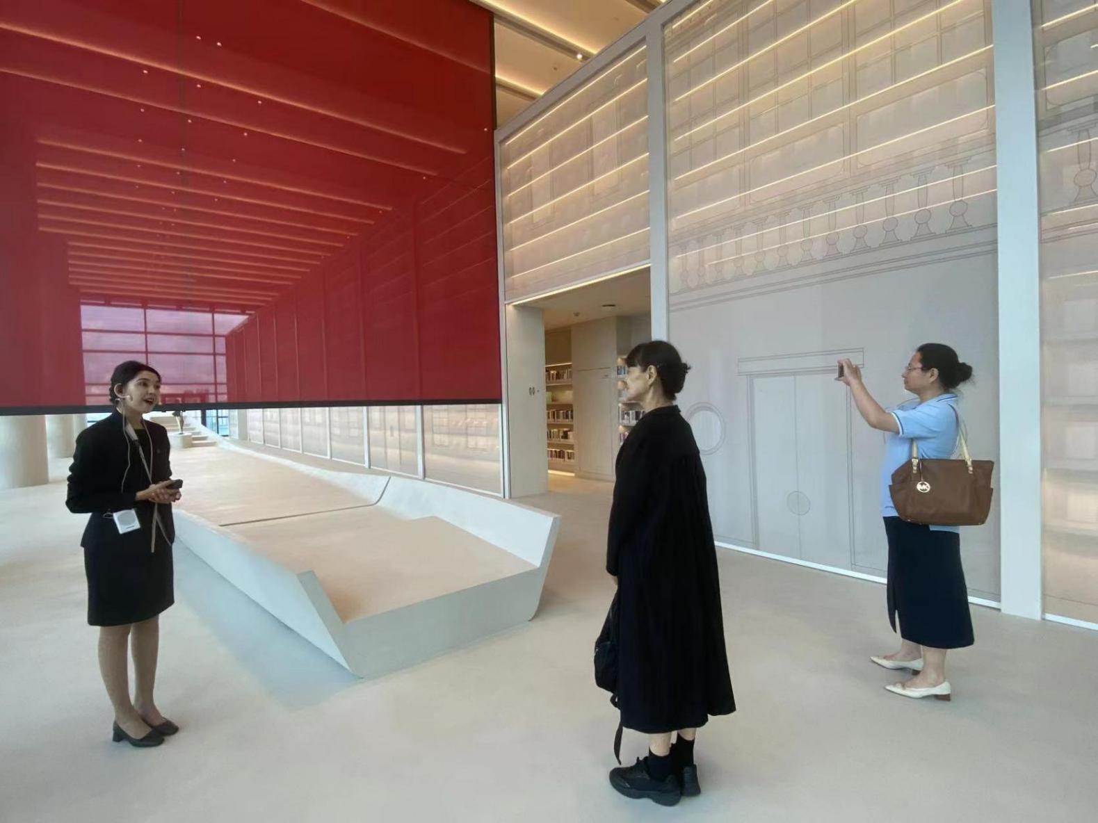 图5 唯品会讲解员向尚华院长介绍唯品会的图书馆设计理念