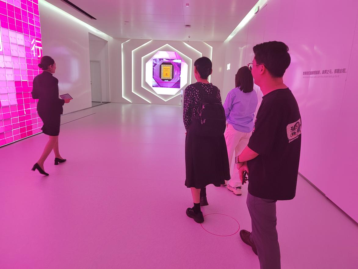 在结束总部的考察后,在张丽女士的引领下,学院老师们进一步走访了唯品会总部,参观了由特立公司设计建设的唯品会企业展示中心。该展示中心作为广州网络科技及高新企业对外展示的重要平台,采用了数字媒体、人机交互及3D裸眼技术等尖端科技,不仅展示了当下数字时代的企业品牌宣传新方式,更前瞻性地描绘了未来生活的全新图景。老师们还深入企业内部,体验了员工活动区、生活区、运动区及图书馆等区域,感受了唯品会独特的企业文化与设计理念。
