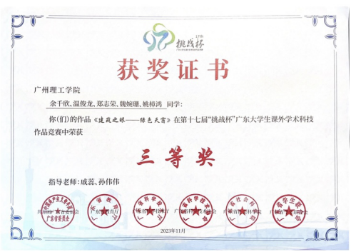第十七届“挑战杯”广东大学生课外学术科技作品竞赛三等奖