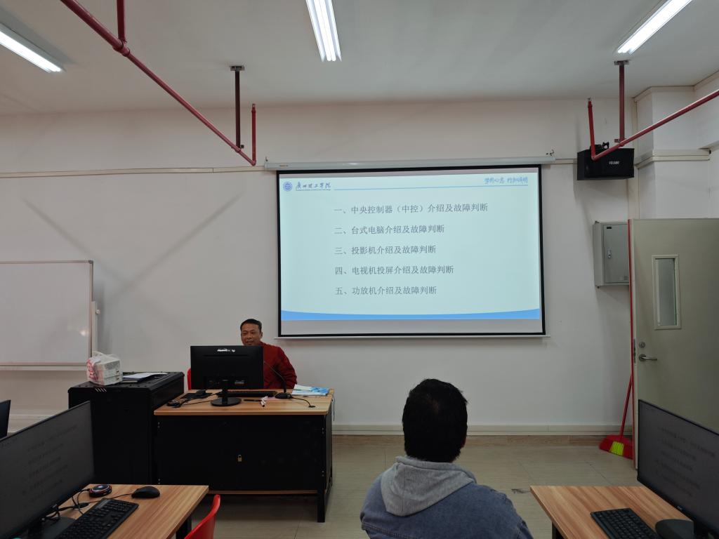 本次培训的主要内容包含:电工基础常识基本故障判断、多媒体设备(含会议一体机)使用以及基本故障判断,网络基本使用以及故障判断,计算机使用常识、实验室电脑集群安装软件维护原理与实操等。多媒体设备使用及基本故障判断部分,通过现场演示与互动教学,帮助实验员熟练掌握了会议一体机、投影仪等多媒体设备的操作流程与日常维护技巧,为提升课堂教学质量提供了有力保障。网络基本使用与故障判断环节,老师们深入浅出地讲解了网络架构、数据传输原理及常见网络故障的排查方法,使实验员对网络环境有了更深入的理解,增强了应对网络故障的能力。计算机使用常识及实验室电脑集群安装软件维护原理与实操部分,则通过理论讲解与实操练习相结合的方式,让实验员掌握了计算机日常维护、系统优化及软件安装与更新的基本技能,为实验室电脑集群的高效运行提供了技术支持。