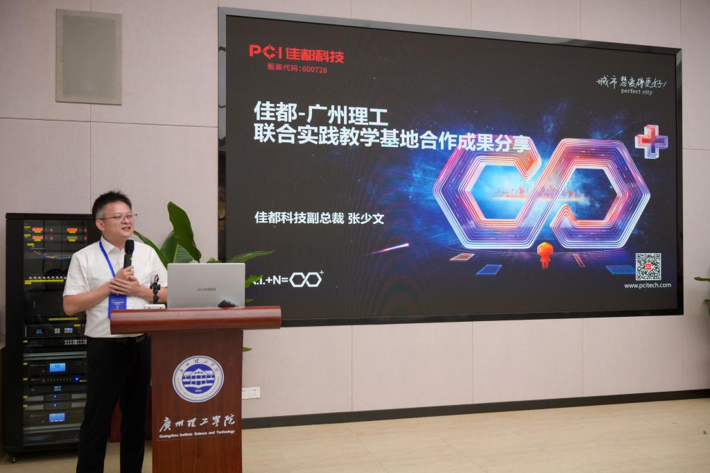 佳都科技集团副总裁张少文展示了实践基地建设成效。基地配备先进设备,每年接收60余名实习生,完成15项研发项目,节省200万元成本,创造近500万元效益。学生在竞赛中获9项国家奖、10项省级奖,发表论文并获2项软件著作权。未来,将扩大合作网络,更新课程体系,强化双导师制,培养高素质应用型人才。