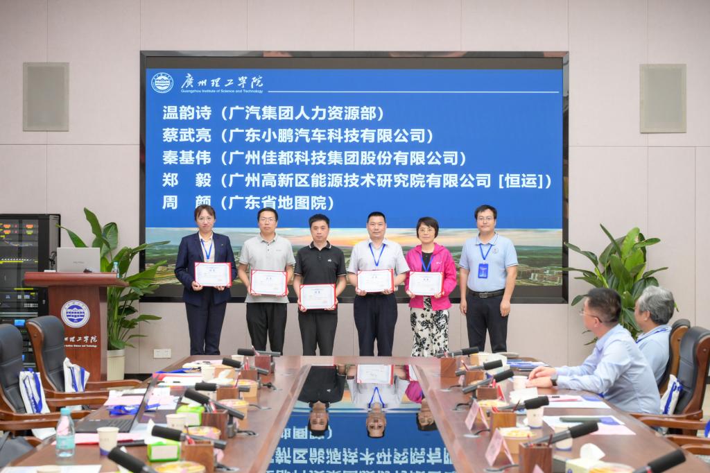 常务副校长伏焕昌为来自广汽、小鹏汽车、佳都科技、粤嵌通信等企业的21名高管和技术专家颁发“企业导师聘书”。