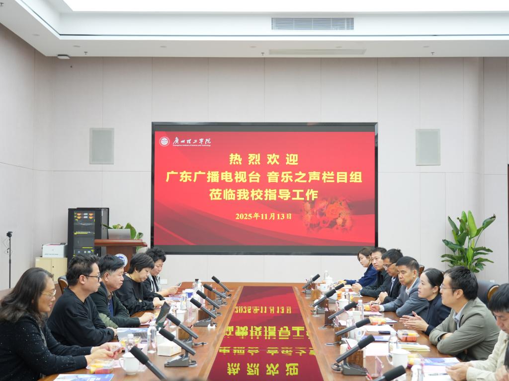 11月13日,广东广播电视台音乐之声文体广播事业部副总监陈石一行5人走访我校,旨在深化产教融合,强化校企合作,赋能人才培养。本次会议由常务副校长伏焕昌主持,我校执行董事魏凤琴、实践教学中心副主任高文财、创新创业学院院长余永龙、人工智能与数字经济产业学院院长贺敏伟、人文与教育学院院长陈南先、艺术设计学院常务副院长刘延华、音乐舞蹈学院副院长李丽丹等14位教师共同参会。
