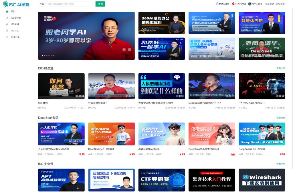 360教育事业部以ISC.AI学苑一站式教育云平台,专注于网络安全与AI人才培养,通过与高校、企业及政府合作,构建“教学-实训-实战-就业”闭环生态,致力于通过对人才能力的研究、教育平台的打造、教学内容的开发、教育服务生态的建设,专注于为政府、企业、教育、金融等机构和组织提供网络安全组织能力咨询、网络安全人才能力培养、专业能力认证、人才能力评估服务和组织安全运营能力人才教育平台搭建。