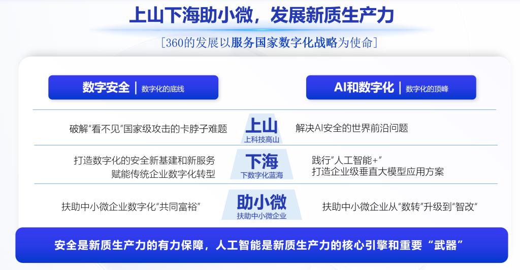 360数字安全集团(三六零数字安全科技集团有限公司)是数字安全的领导者,秉持“上山下海助小微”企业使命,确立安全和AI发展双主线。