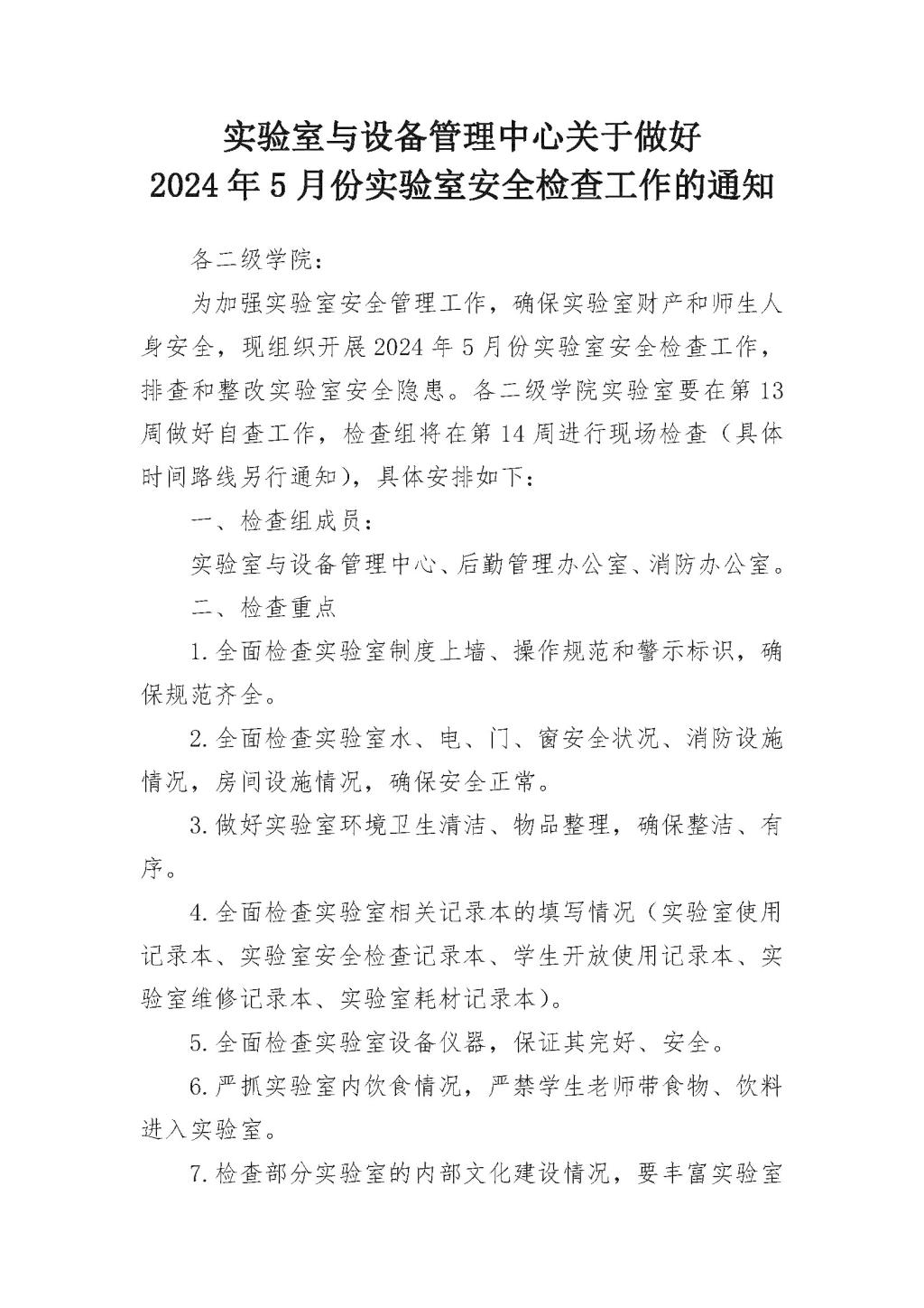 实验室与设备管理中心关于做好2024年5月份实验室安全检查工作的通知