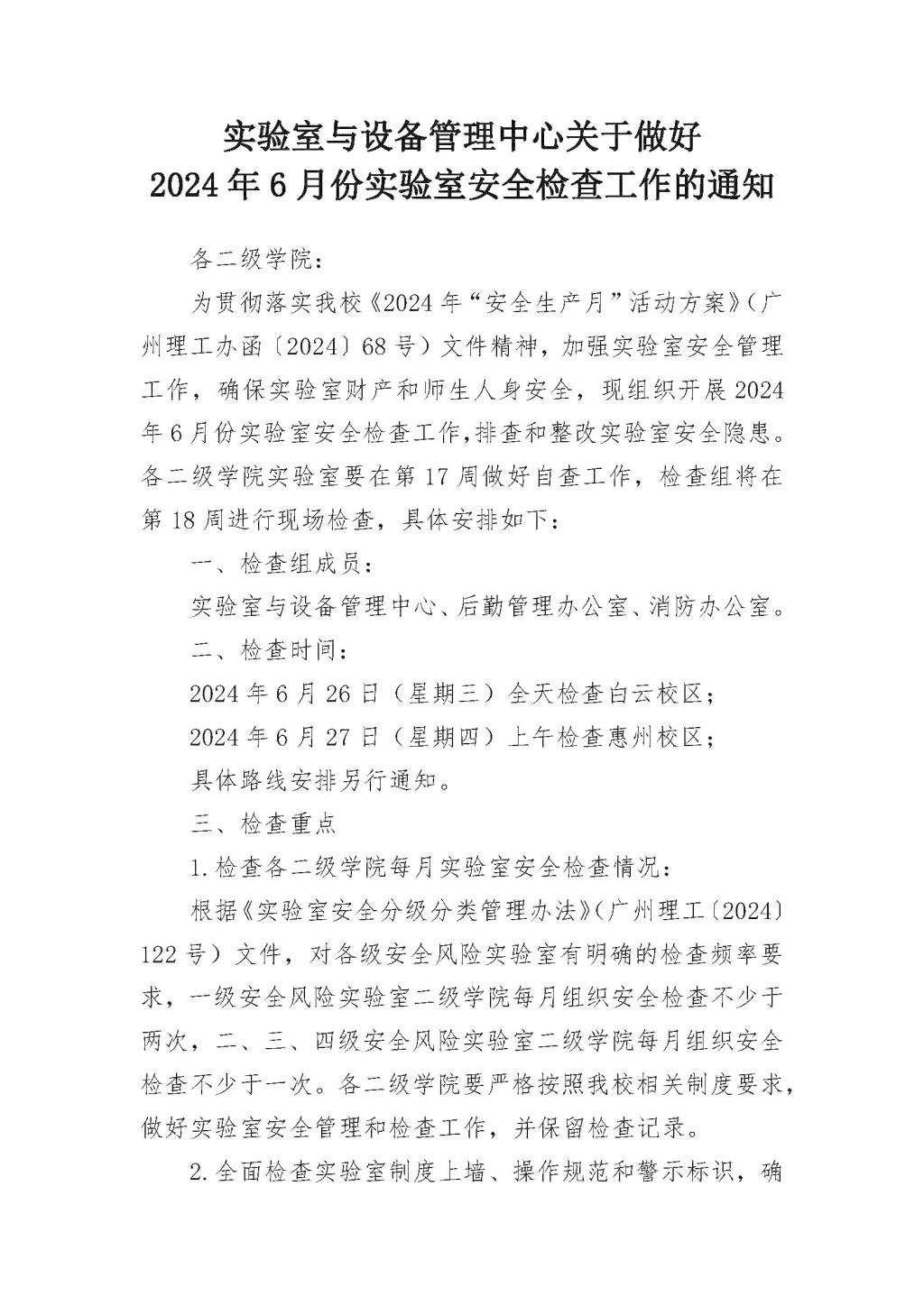实验室与设备管理中心关于做好2024年6月份实验室安全检查工作的通知