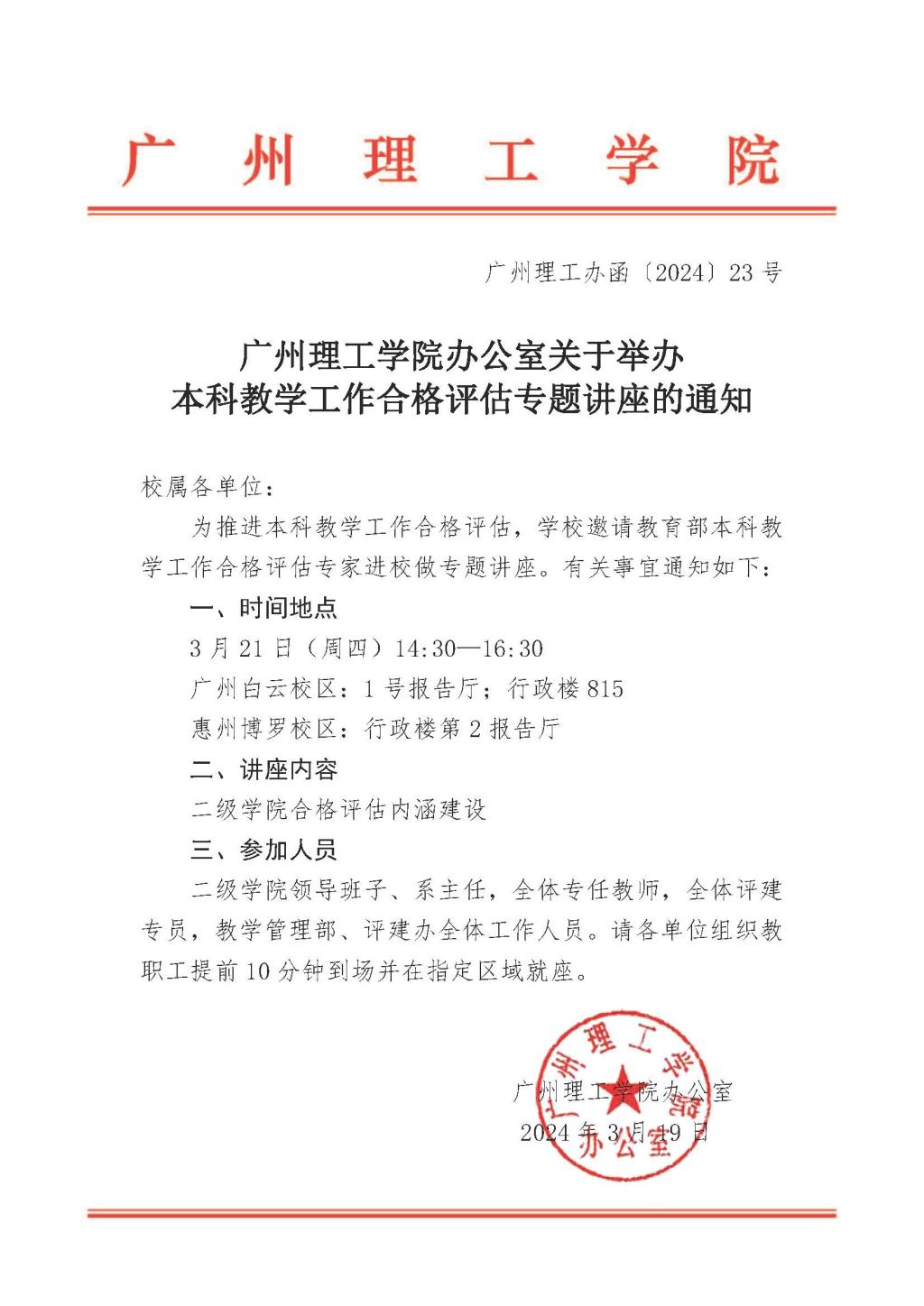 关于举办本科教学工作合格评估专题讲座的通知