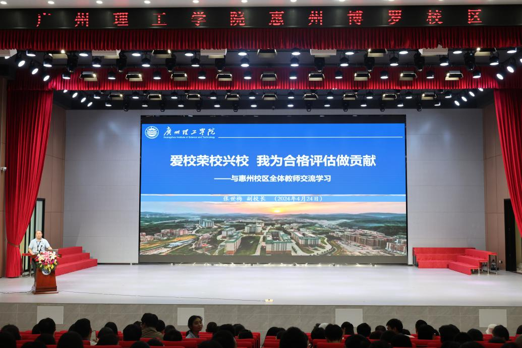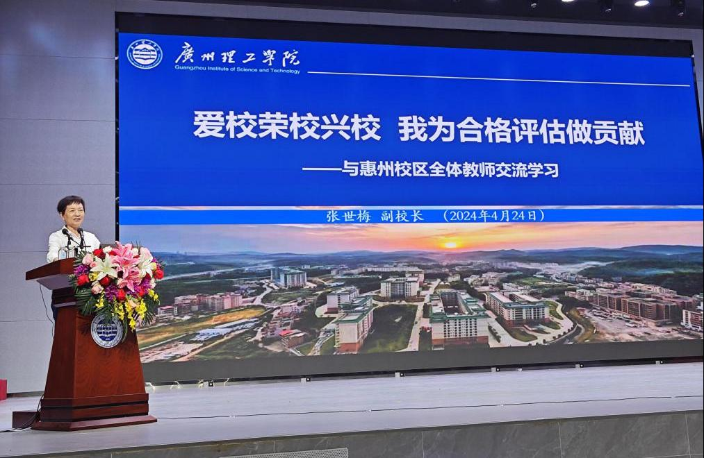 (李美颖)为进一步推进迎评促建工作,4月24日,学校在惠州校区学术报告厅举办本科教学工作合格评估专题讲座。副校长、评建工作办公室主任张世梅作题为《爱校荣校兴校 我为合格评估做贡献》的专题报告。惠州校区全体专任教师及管委会、评建工作办公室相关人员参加讲座,讲座由副校长肖海主持。